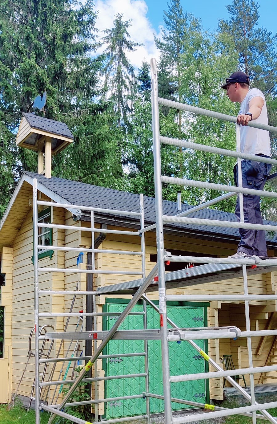 Lopputuloksena syntyi näyttävä ja hyvin suojattu julkisivu, joka kestää aikaa ja säilyttää aitan arvokkuuden vuosiksi eteenpäin.